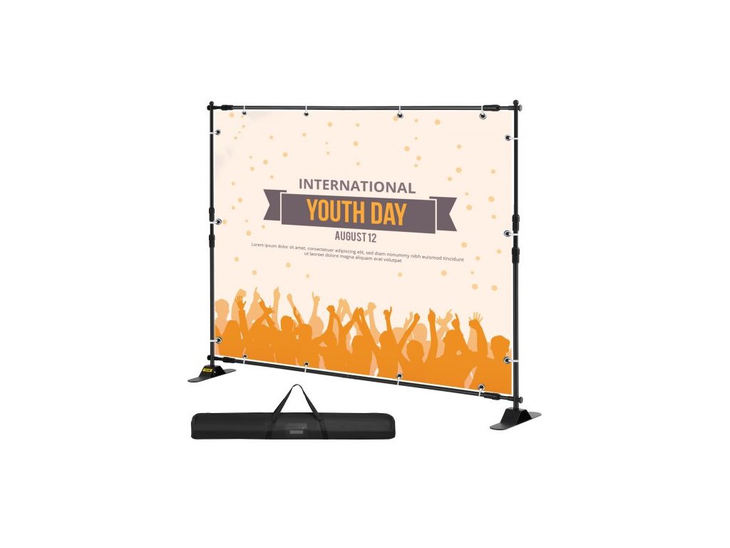 VEVOR 8FT kulisový stojan na bannery s krokovým a opakovaným nastavitelným teleskopickým lehkým nástěnným vystavovatelem na výstavu s taškouVysoce odolný hliníkový rám