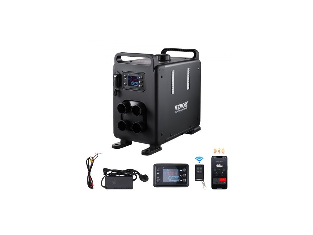 VEVOR 8KW dieselové ohřívač vzduchu, 12V/24V univerzální dieselový ohřívač vzduchu, ovládání přes Bluetooth APP, dálkové ovládání a displej, alarm CO, rychlé vytápění vertikální přenosný dieselový ohřívač pro vozidla, garដiroká kompatibilita