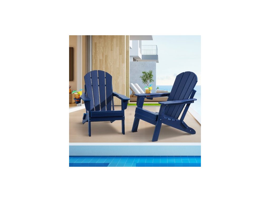 VEVOR Adirondack židle plastová, sada 2 kusů, přenosná skládací židle k ohništi do každého počasí, venkovní Adirondack židle na terasu s držákem na nápoje, s relaxační ergonomickou opěrkou rukou, do zahrady, tmavě modrá na dvůrPlastová židle Adirondack