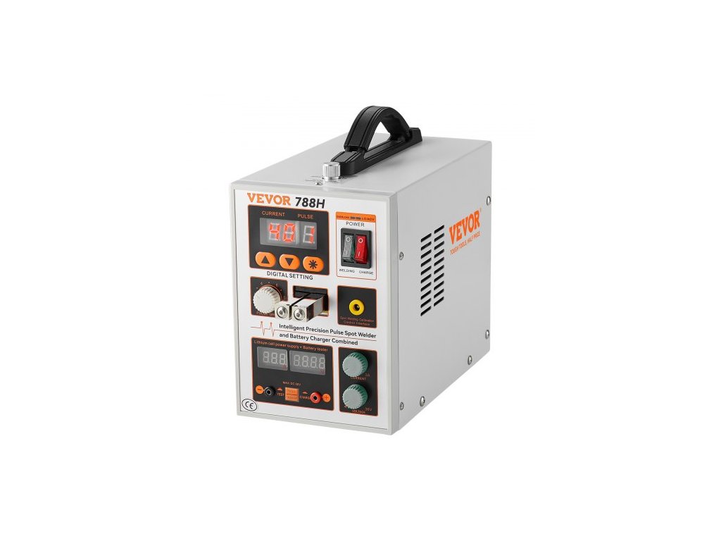 Rozměry produktu: 245 x 140 x 220 mm, Tlak svařovací jehly: 300 g-750 g, Tloušťka bodového svařování: 0,15 mm (pásek z čistého niklu), Svařovací proud: 500-800A,Číslo modelu položky: 788H, Maximální výstupní výkon: 2,8 kW, Čistá hmotnost: 10,1 liber / 4,6 kg