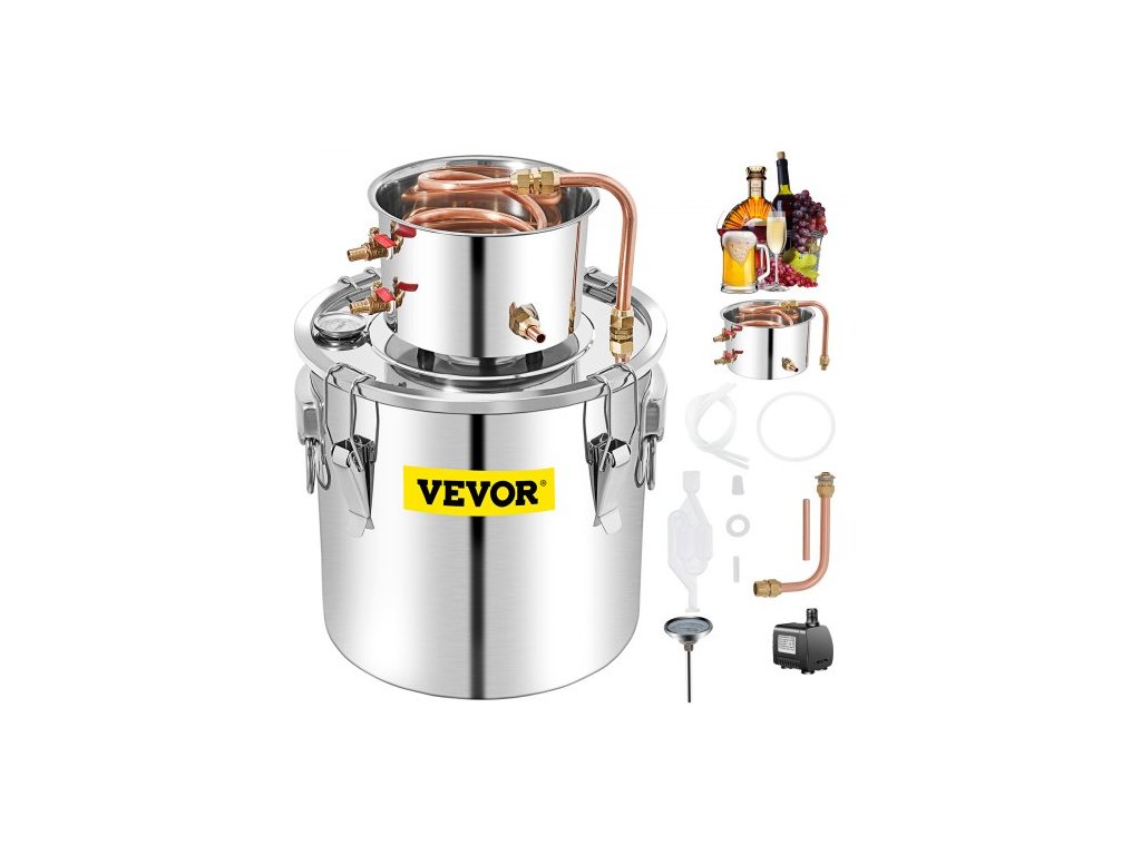 VEVOR Alcohol Destilátor, 50l nerezová ocelová palírna na vodu a alkohol s kondenzátorem, 13,2galový kotel na výrobu vína s měděnou trubkou, sada pro domácí vaření piva s vestavěným teploměrem pro výrobu whisky, vína a brandy, Sil