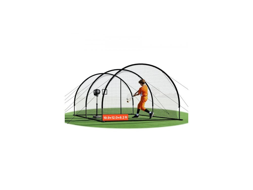 VEVOR Baseballová klec na pálkování, 6060 x 3660 x 2500 mm Volně stojící přenosná klec na pálkování, odpalovací klece s 30vrstvým vázaným HDPE a otvorem pro nadhazovací stroj, síťovina na odpalovací klece pro vnitřní a venkovní použití