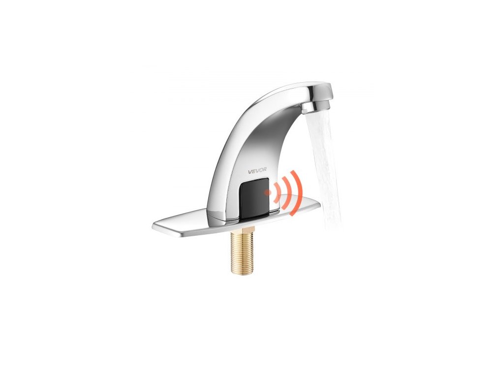 VEVOR Bezdotyková koupelnová umyvadlová baterie, automatický senzor pohybu, toaletní baterie, studená voda s krycí deskou, na baterie pro potrubí 9,5 mm, komerční toalety, chromovaná stříbrná, G233Bezdotykové ovládání