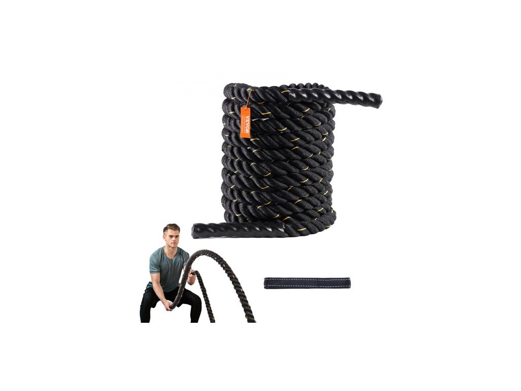 VEVOR Bojové lano, průměr 1,5 palce, délka 30 stop, polyesterové cvičební lano, vybavení pro bojové cvičení, těžké lano pro domácí posilovnu, posilování středu těla, posilování, budování svalů, fitness