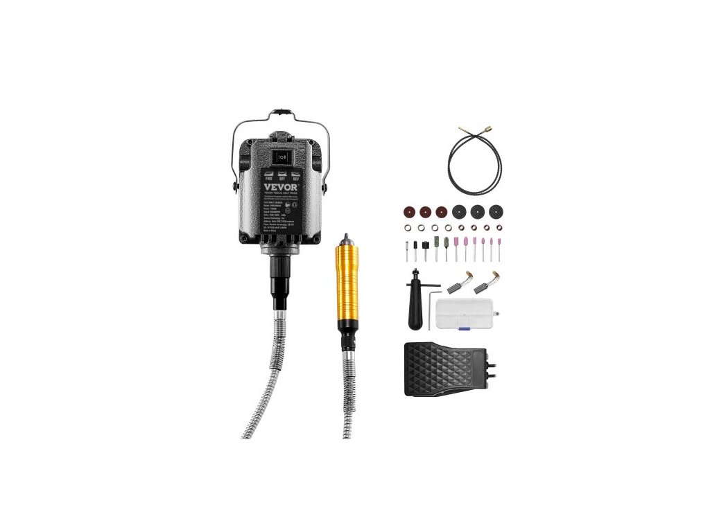 VEVOR Bruska s ohebnou hřídelí, 1000W 30 000RPM Elektrický rotační nástroj s ohebnou hřídelí, multifunkční bruska s 31 díly příslušenství pro řezbu, leštění, vrtání, leštění, 230VVysoká účinnost