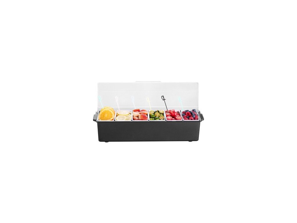 VEVOR Chlazený servírovací tác na koření, 6přihrádková ledově chlazená servírovací nádoba na koření, chlazený ozdobný tác s víkem, pro barmany a servírování tacos, salátů, ovoce, domácích a restauračních potřebSpodní přihrádka na led