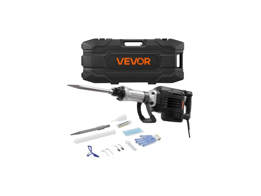 VEVOR Demolition Jack Hammer, výkonné elektrické sbíjecí kladivo 3000 W, 1700 úderů za minutu, bourací kladivo na beton s hrotovým sekáčem, přepravní kufřík, rukavice, ochranné brýle, na beton, zdi, cihly, dlaždice a základy