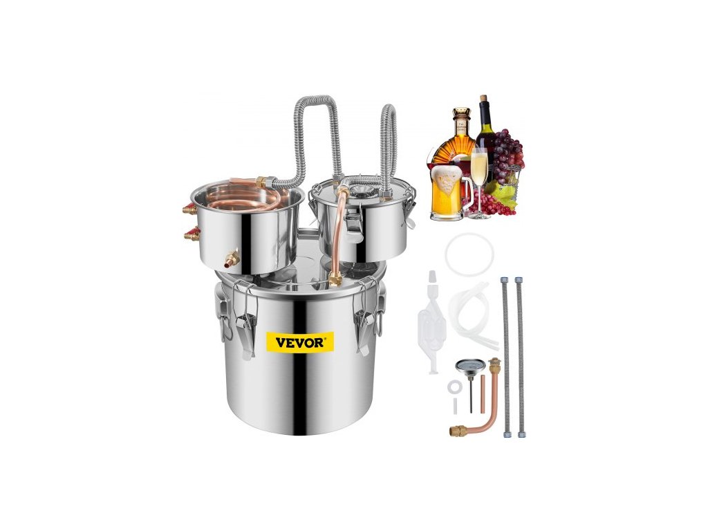 VEVOR Destilační palírna 3Gal 12L z nerezové oceli, měděná trubka s oběhovým čerpadlem, sada pro domácí vaření piva, vestavěný teploměr pro kutily, whisky, víno, brandy, lihovinyVelká kapacita 3 galony