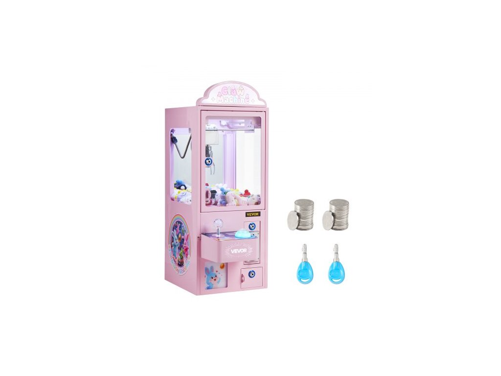 VEVOR Drápový jeřábový stroj, středně velký arkádový herní automat se světlem a zvukem, nastavitelné ocelové drápy, přesná hračka na bonbóny, dávkovač cen, prodejní automat, pro komerční domácí večírky, kino, růžováDrápový stroj