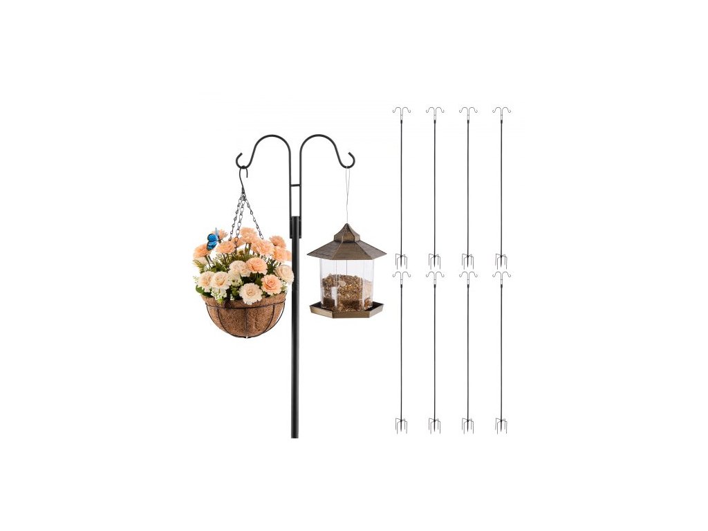 VEVOR Dvojité pastýřské háčky pro venkovní použití, 8 kusů, odolná tyč na krmítko pro ptáky o délce 2730 mm, 19 mm silné zahradní háčky pro zavěšení krmítka pro kolibříky, košíků na rostliny, solárních luceren, zvonkohryPrémiová tyč na krmítko pro ptáky