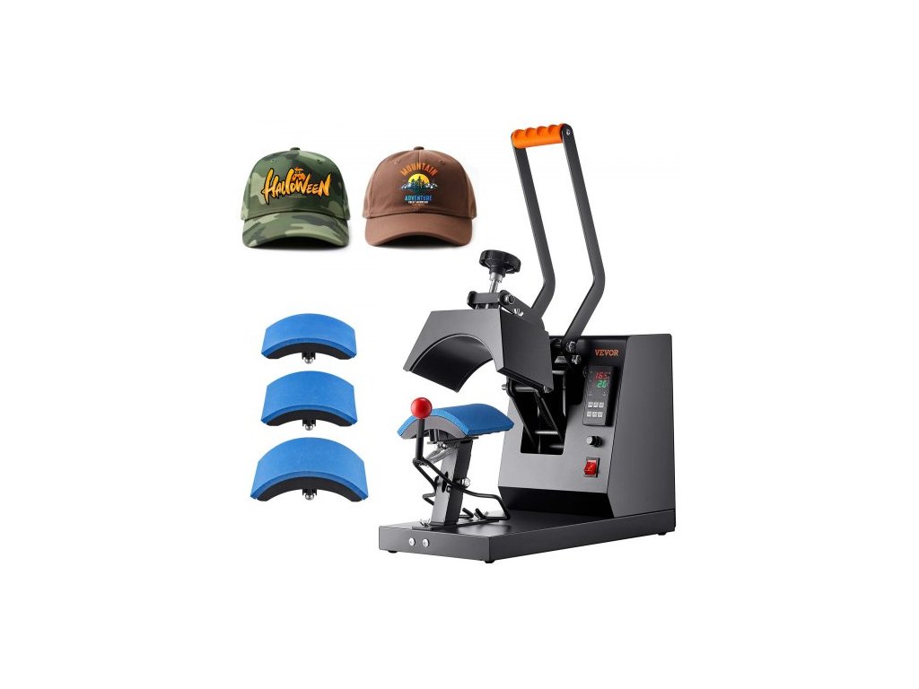 VEVOR Hat Heat Press, 4-v-1 Cap Heat Press Machine, 6 x 3 palce Clamshell Sublimation Transfer, LCD digitální řízení teploty s časovačem se 4 zakřivenými topnými články (6x3/6,7x2,7/6,7x2,7/8,1x3,5)