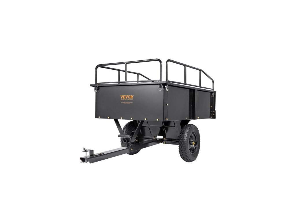 VEVOR Heavy Duty ATV Přívěs Ocelový sklápěcí vozík, 750 liber 15 kubických stop, zahradní užitkový přívěs s odnímatelnými bočnicemi pro pojízdný traktor na trávuOsvojte si tažení bez námahy