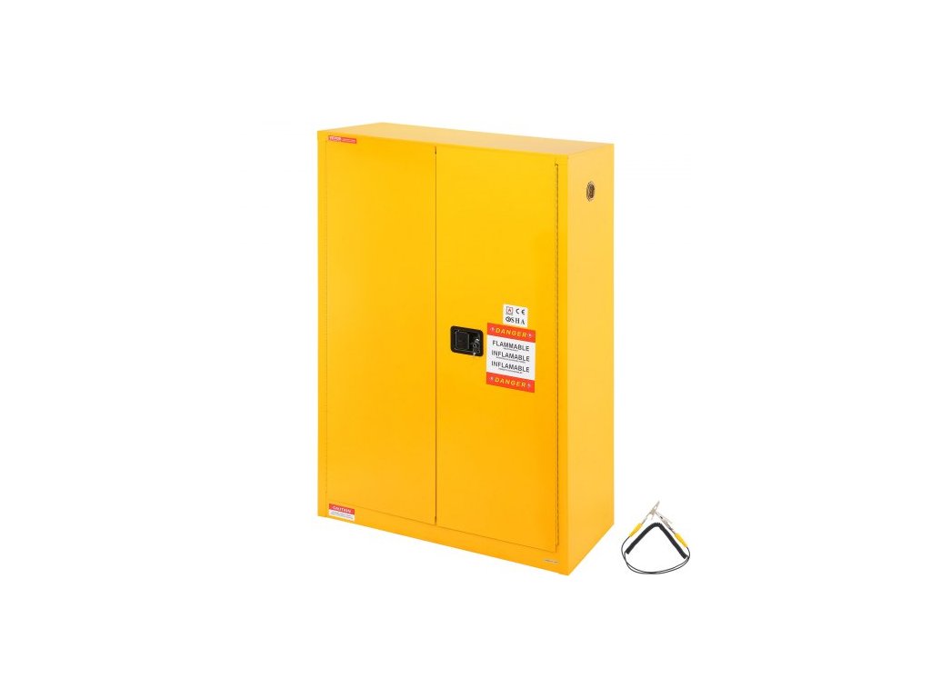 VEVOR hořlavá bezpečnostní skříň, 45 gal, za studena válcovaná ocelová skříň na hořlavé kapaliny, 42,9 x 18,1 x 65,2 palce odolná proti výbuchu se 2 nastavitelnými policemi 2 manuální dvířka pro průmyslové použití, žlutáRobustní a odolný