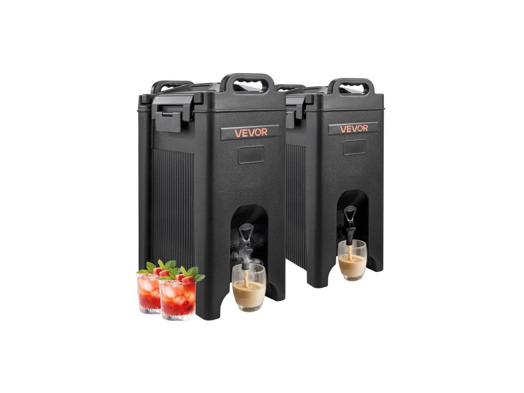 VEVOR izolovaný dávkovač nápojů, servírovací talíř na teplé a studené nápoje o objemu 5 galonů/19 l s kohoutkem a rukojetí, termoservírovací chladič na nápoje potravinářské kvality na čaj, kávu a vodu v kavárnách a restauracích, balení po 2 kusech, černýZtluštěná rukojeť