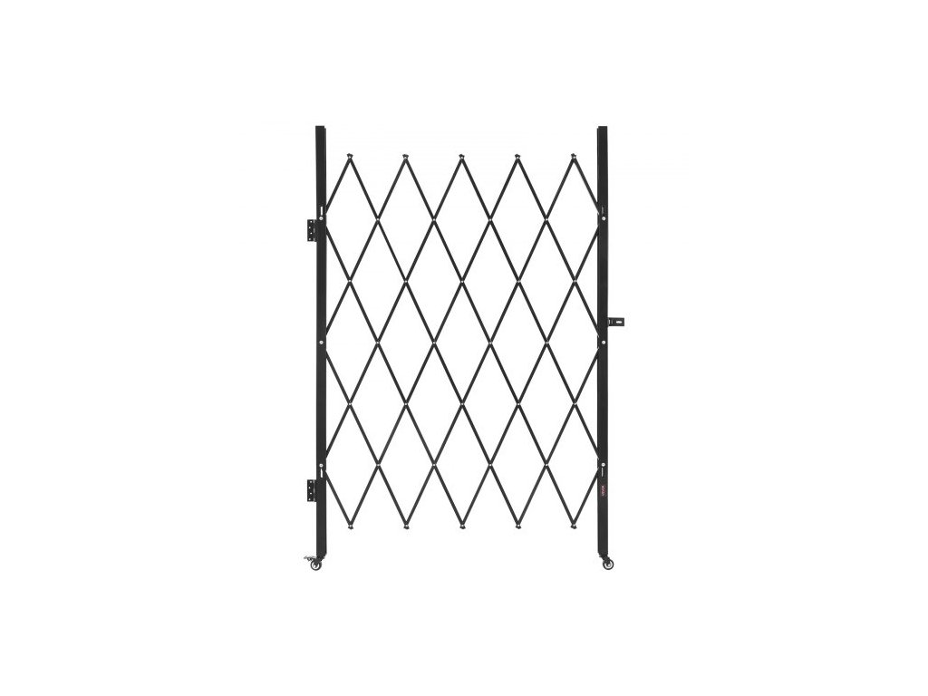 VEVOR Jednoduchá skládací bezpečnostní brána, uzamykatelná nůžková brána s otočnými kolečky o 360°, venkovní ocelová zatahovací brána s barikádou, pro zabezpečení vstupu, garáže, skladu a bazénu, 126 × 197,5 cm (Š × V)Uzamykatelná otočná kola