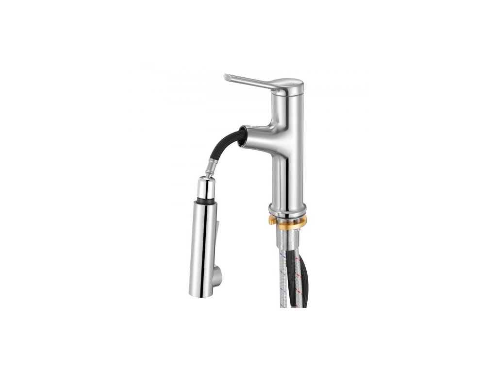 VEVOR Jednouchová umyvadlová baterie, Jednouchová výsuvná baterie s 1 nebo 3 otvory, Kartáčovaný nikl, nerezová umyvadlová baterie s tlačítkovým spínačem, Vhodné do koupelny, obytného vozu, veřejné toalety, Bez olovaMultifunkční