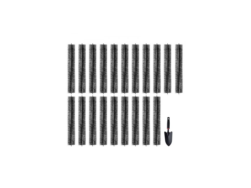 Hlavní materiál: PP + pozinkovaný ocelový drát, Rozměry produktu: 5,24 x 5,24 x 37,4 palce / 133 x 133 x 950 mm, Množství: 20 ks, Barva: Černá, Celková délka: 18,3 m, Průměr kartáče: Φ5,25 palce / 133,4 mm,Model: 0810-20, Čistá hmotnost: 7,6 liber / 3,45 kg