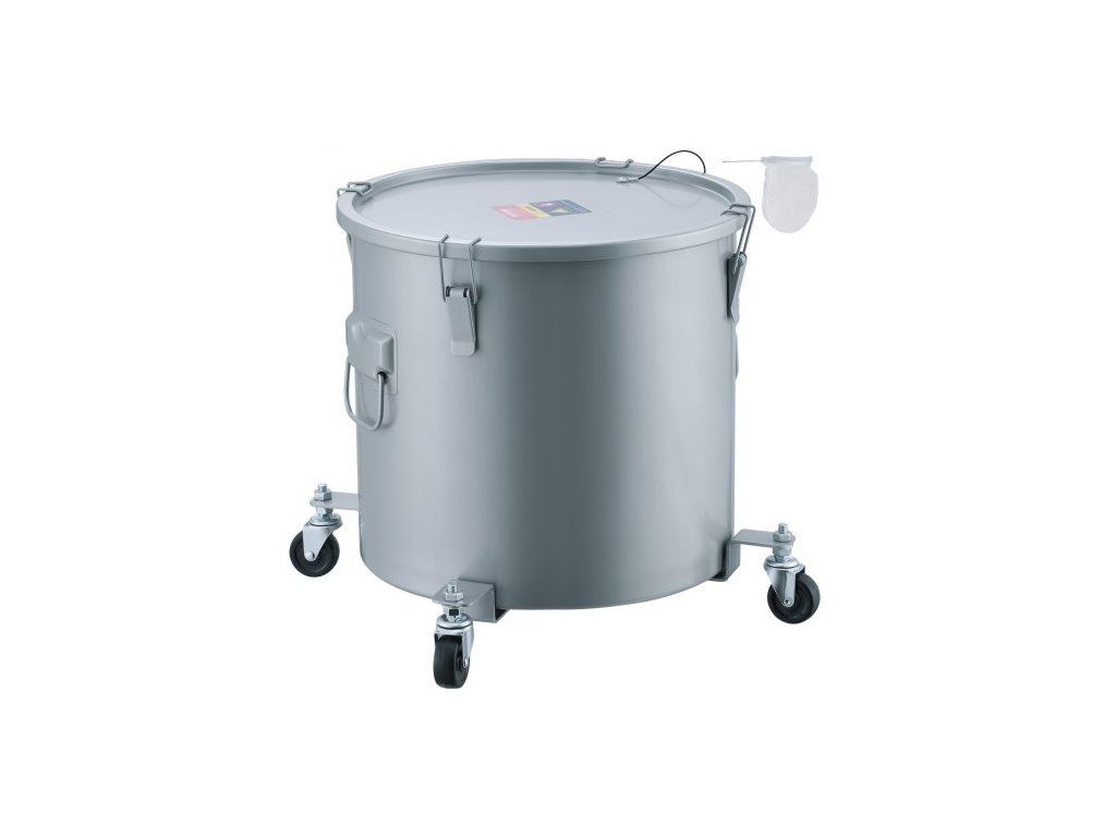 VEVOR kbelík na tuk do fritézy, nádoba na odpadní olej o objemu 16 galonů s kolečkovou základnou, povrchová úprava z uhlíkové oceli proti korozi, přepravní nádoba na olej s víkem, pojistné spony, filtrační sáček pro filtrování horkého oleje na vaření, šedáVysokokapacitní nádoba na mazivo