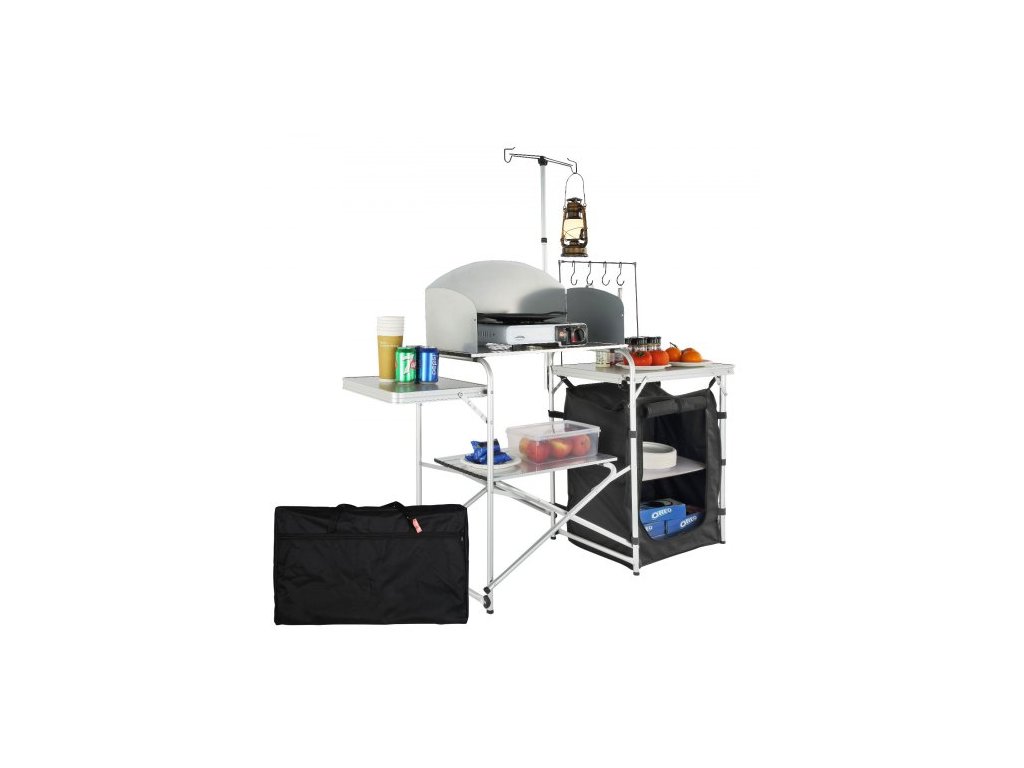 VEVOR Kempingový kuchyňský stůl, skládací přenosný kuchyňský stůl, 1 skříňka a čelní sklo