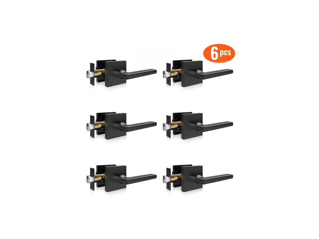VEVOR klika pro průchozí dveře, sada 6 matně černých klik, levá nebo pravá otočná páka, bez aretace, otočení o 45° pro otevření, hranaté vnitřní kliky pro chodby, šatny, zasedací prostoryBezklíčová jednoduchost
