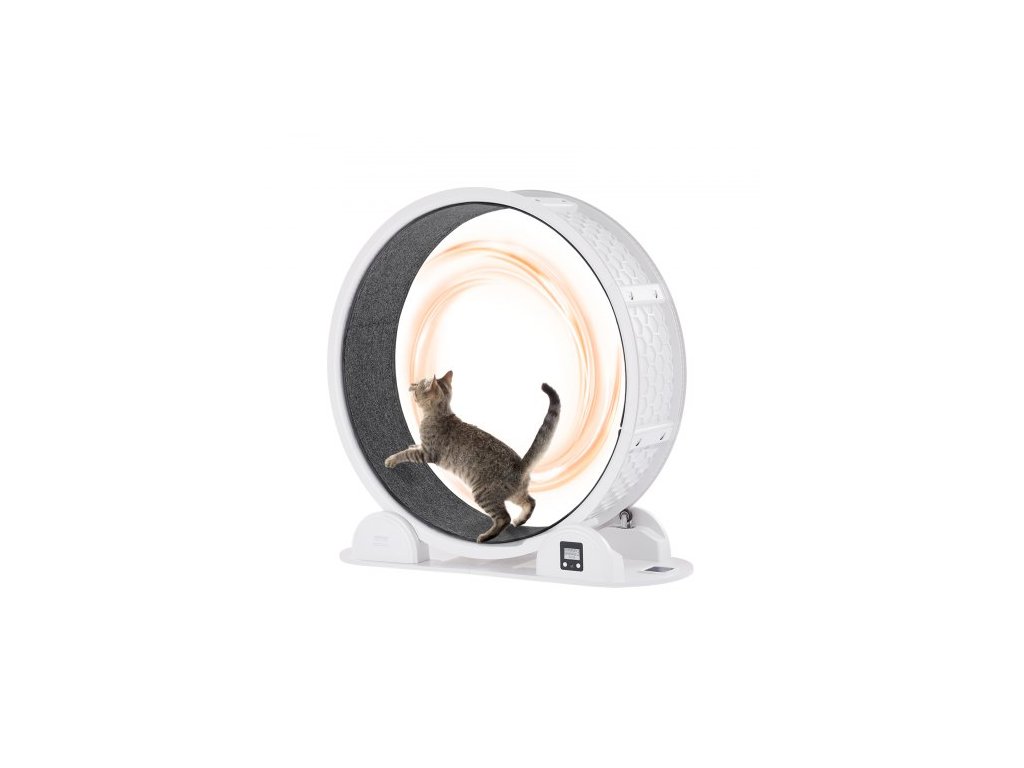 VEVOR Kočičí cvičební kolečko s krokoměrem, 40,8 palce, běžecké kolečko pro kočky s brzdou a kobercovou dráhou, tichý běžecký pás pro kočky v interiéru do 30 liber, kočičí cvičební pás pro domácí mazlíčky, zdraví a fitness, bíláBezpečné a efektivní cvičení