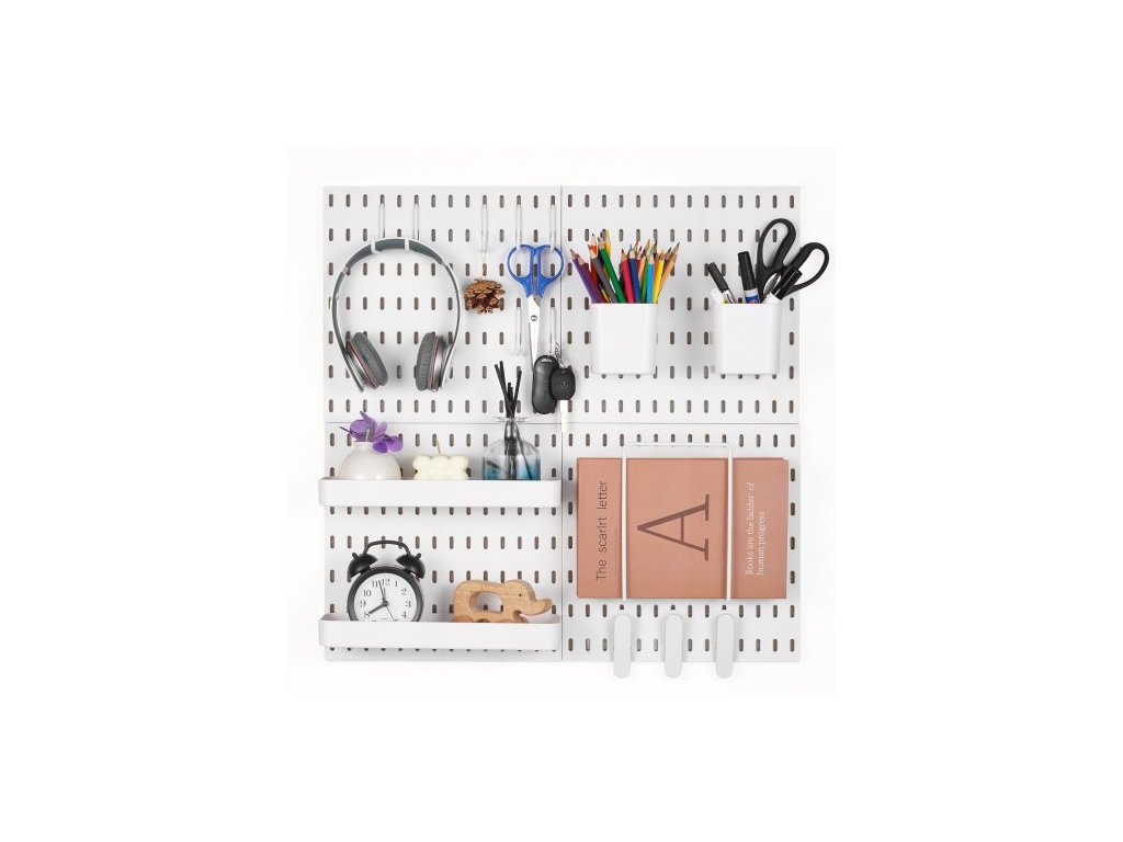 VEVOR Kombinovaná sada děrovaných desek, plastová děrovaná deska 11" x 11", 4 panely, nástěnný organizér s příslušenstvím, pro garáž, úložný prostor na nářadí, kuchyň, obývací pokoj, řemeslnou místnost, kancelář, koupelnu, domov, bíláVýkonná funkcionalita