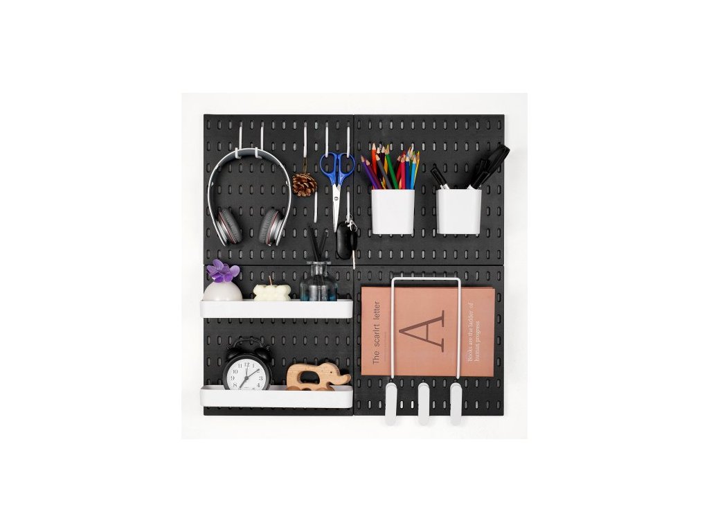 VEVOR Kombinovaná sada děrovaných desek, plastová děrovaná deska 11" x 11", 4 panely, nástěnný organizér s příslušenstvím, pro garáž, úložný prostor na nářadí, kuchyň, obývací pokoj, řemeslnou místnost, kancelář, koupelnu, domov, černáVýkonná funkcionalita