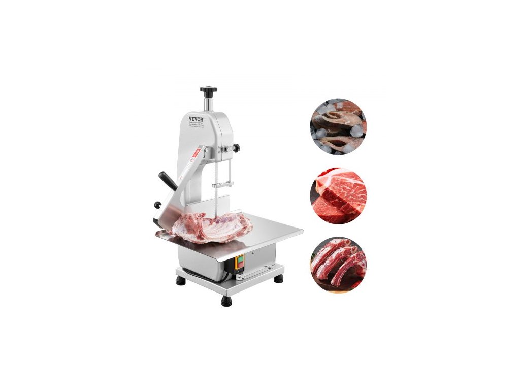 VEVOR Komerční elektrická pásová pila na maso, 650W nerezová stolní pila na maso, pracovní stůl 315 x 460 mm, maximální tloušťka řezu 110 mm, řezačka mražených ryb na vepřová a hovězí žebra