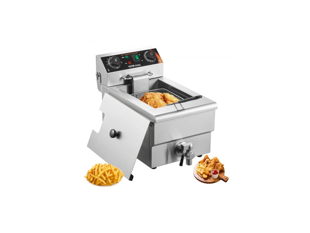 VEVOR Komerční fritéza, elektrická stolní fritéza s košem o výkonu 3000 W, 11,6 qt / 11 l, nerezová fritéza na jeden olej s regulací času a teploty, ochrana proti přehřátí, pro použití v kuchyni a restauraci