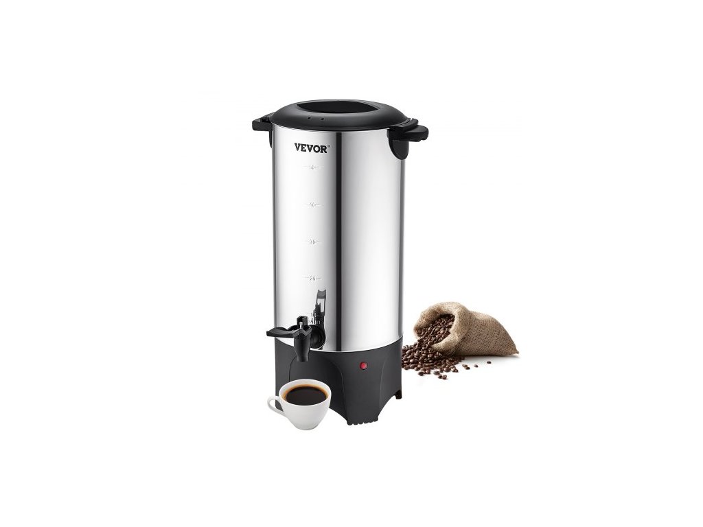 VEVOR Komerční kávová urna, nerezový velký dávkovač kávy na 50 šálků, elektrický kávovar 1000 W 220 V pro rychlé vaření, urna na horkou vodu s odnímatelným napájecím kabelem pro snadné čištění, stříbrnáNádrž z nerezové oceli
