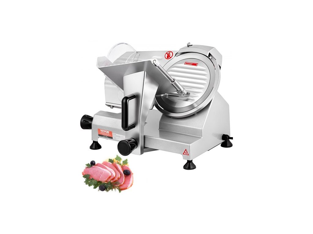 VEVOR Komerční kráječ masa, 200W elektrický kráječ lahůdek, 350-400 ot./min. kráječ masa s čepelí z uhlíkové oceli 20,3 cm, nastavitelná tloušťka 0 - 1,2 cm, elektrický kráječ masa pro domácí i komerční použití