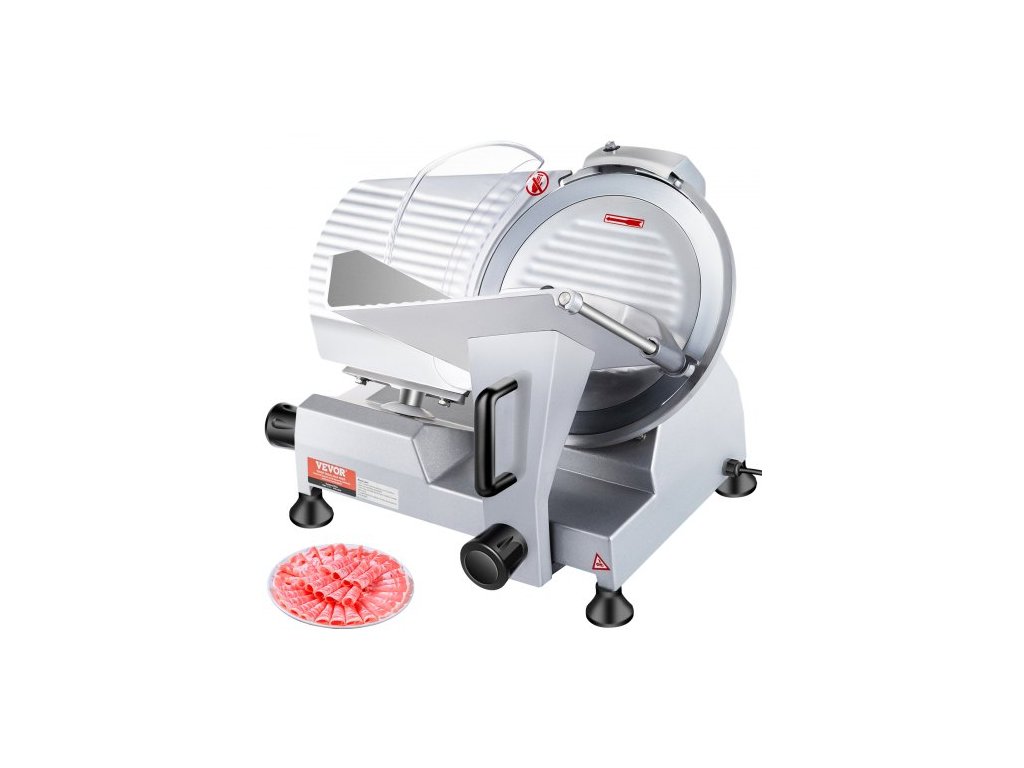 VEVOR Komerční kráječ masa, 240W elektrický kráječ lahůdek, 10palcová čepel z uhlíkové oceli, elektrický kráječ masa 350-400 ot./min, nastavitelná tloušťka 0 - 0,47 palce pro komerční i domácí použití