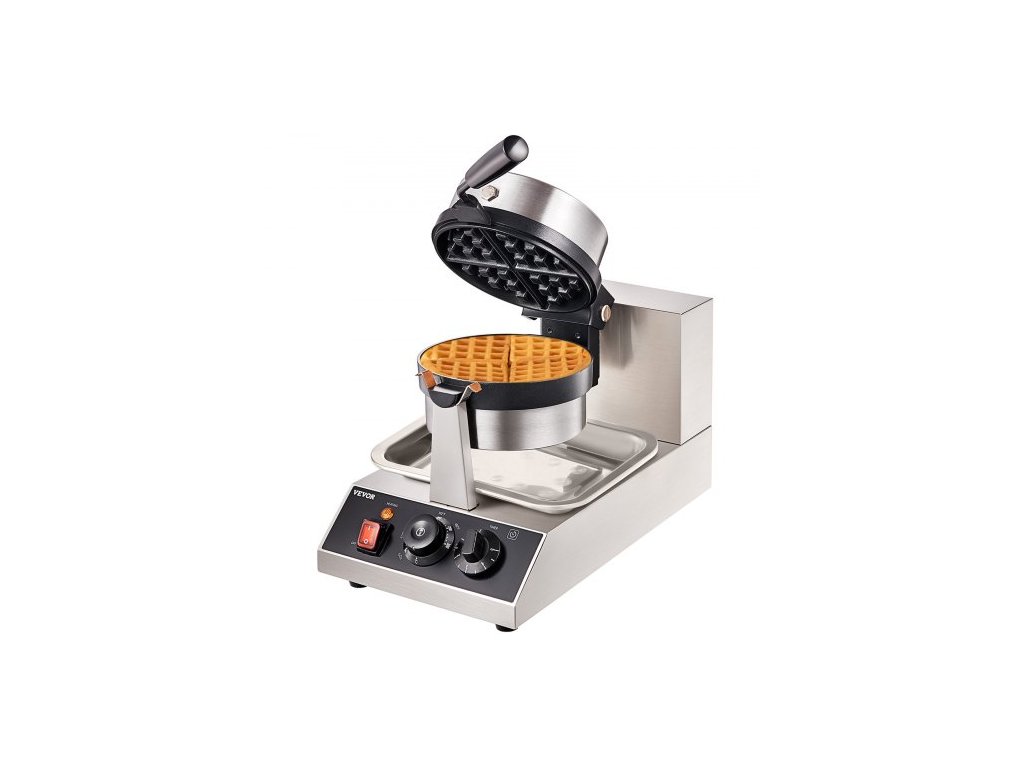 VEVOR Komerční kulatý výrobník vaflí 1300 W otočný nepřilnavý vaflovač 220 VOhnutá rukojeť
