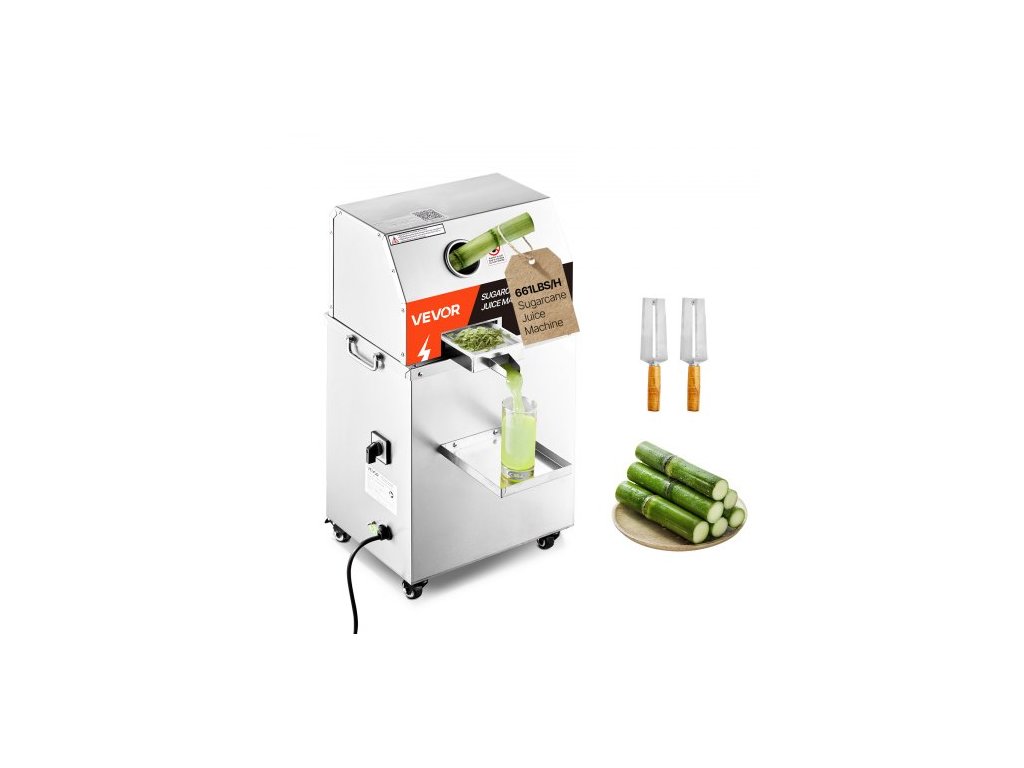 VEVOR Komerční odšťavňovač na cukrovou třtinu, elektrický odšťavňovač na cukrovou třtinu o výkonu 800 W s vysokým výkonem 300 kg/h, 3 válce z nerezové oceli, lis na cukrovou třtinu, odšťavňovač na kolečkách pro domácí/komerční použitíEfektivní výroba šťávy z cukrové třtiny