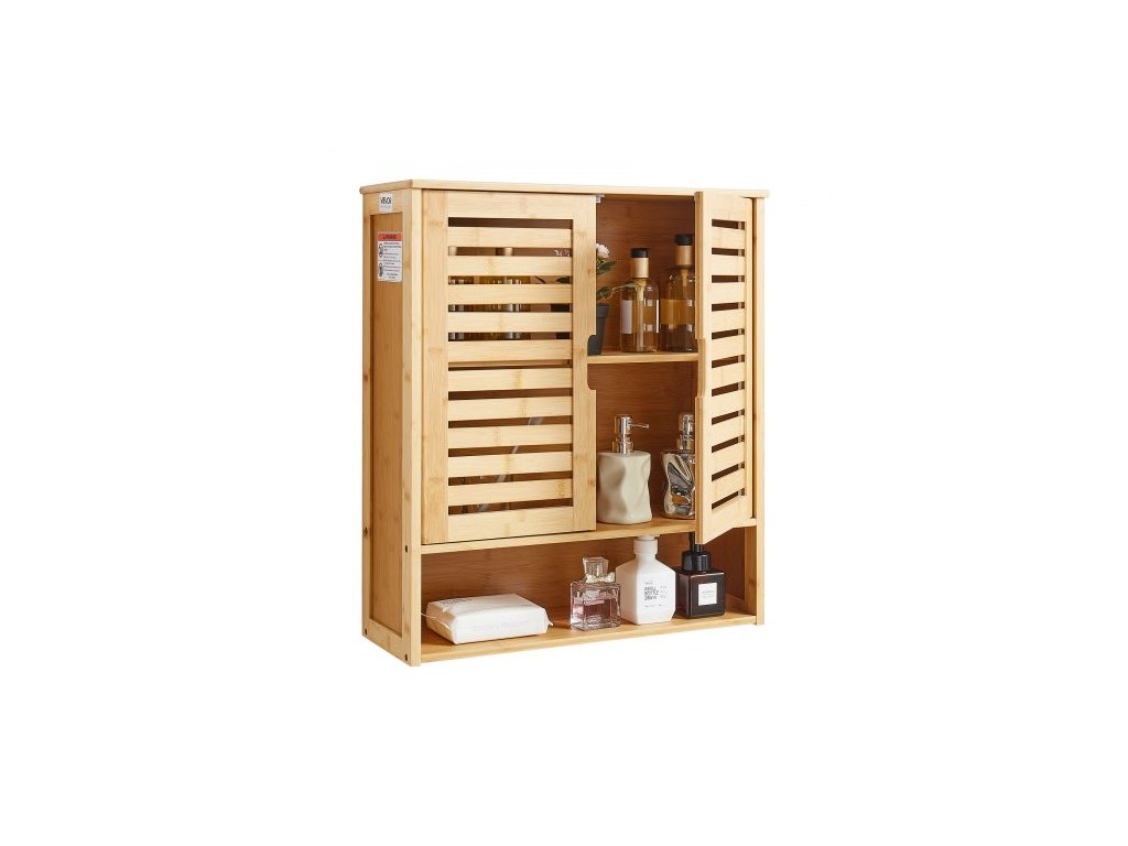 VEVOR Koupelnová nástěnná skříňka, 2 dveře a nastavitelná police, nad toaletu, úložná skříňka na léky, nástěnná montáž, závěsný organizér s policemi a otevřenou přepážkou do prádelny, kuchyně, toaletyNástěnná koupelnová skříňka