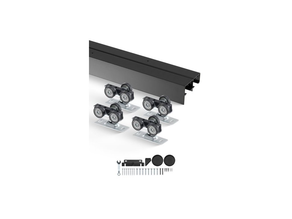 VEVOR Kování pro obtokové dveře, sada kování pro posuvné dveře o délce 4 stopy, sada kování pro posuvné dveře z hliníkové slitiny s úchytkami, pro 2dveřový systém, vhodné pro tloušťku dveří 1 3/8" - 1 3/4Sada kování pro posuvné dveře o délce 4 stop (1,2 m)