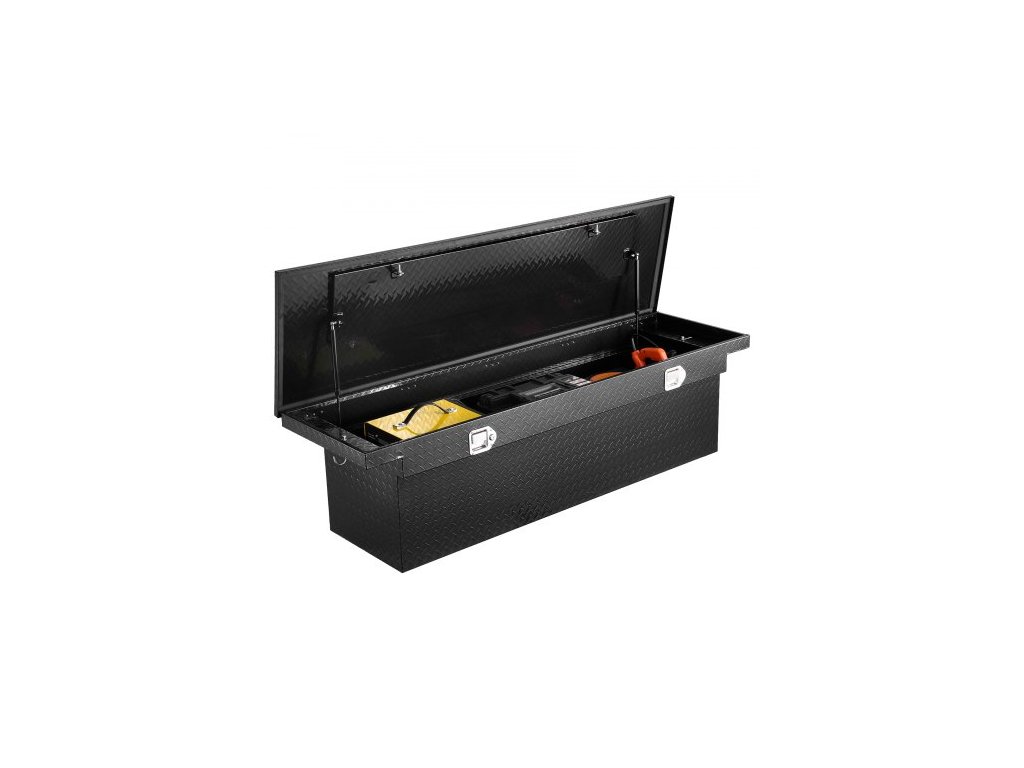 VEVOR Krabice na nářadí pro crossover, 69x20x18 palců, odolná hliníková krabička na nářadí s diamantovou texturou, krabička na nářadí pro korbu pick-upu a obytný přívěs, vodotěsný úložný organizér se zámkem, klíče, boční rukojeti, černáNákladní automobil
