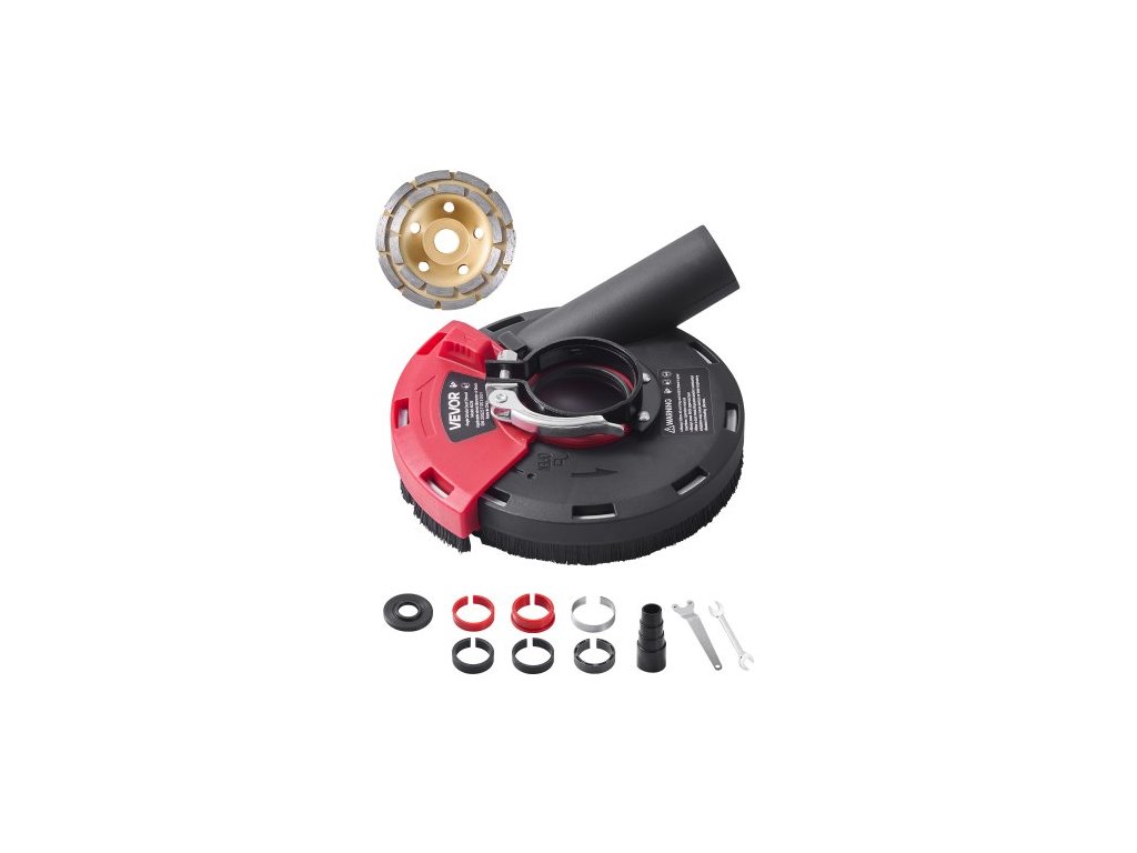 VEVOR Kryt proti brusnému prachu pro úhlovou brusku, univerzální 4-5 palců, kryt proti prachu pro rovinnou brusku s 6 upínacími podložkami a 5palcovým diamantovým brusným kotoučem, pro připojení k vysavači, pro dřevobetonovou stěnuPasuje na brusné kotouče o průměru 4-5 palců