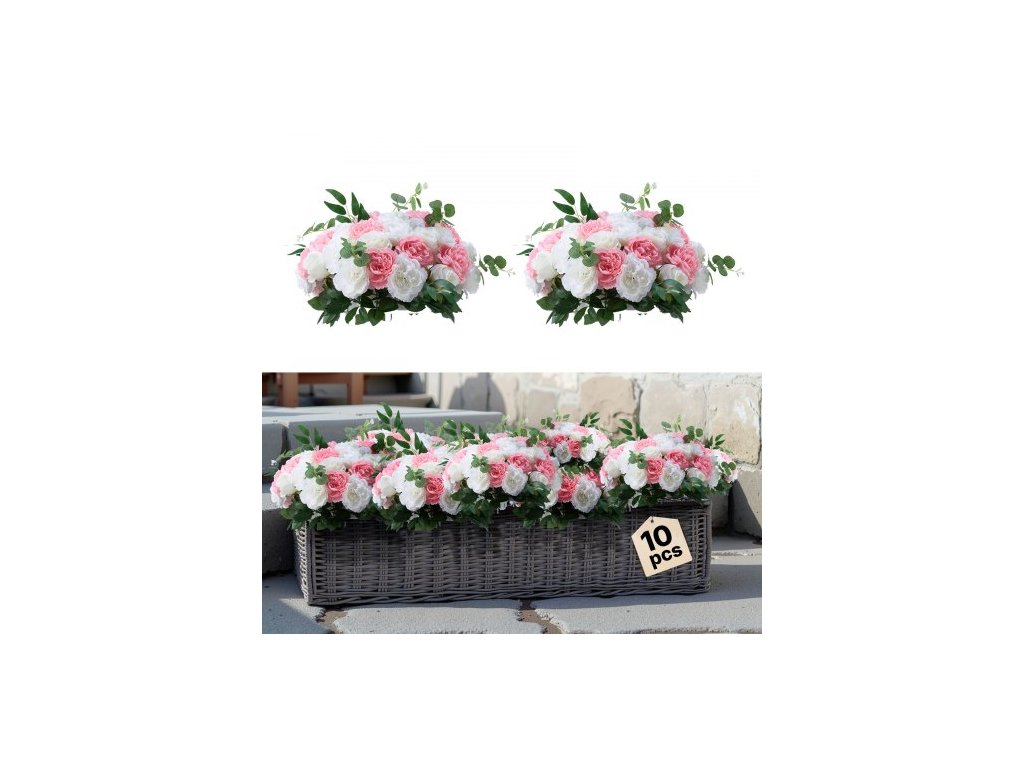 VEVOR Květinová kytice s koulemi 10 ks, průměr 450 mm, umělé květinové koule, svatební dekorace na stůl, aranžmá růží pro svatební dekorace, bytové dekorace, růžové a bílé růže