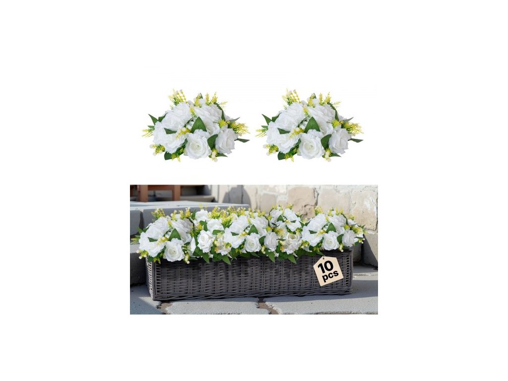 VEVOR Květinové koule, aranžmá, kytice 10 ks, průměr 240 mm, umělé květinové koule, svatební růže, dekorace na stůl, umělé květiny, aranžmá pro svatební dekorace, dekorace na stůl, bílá
