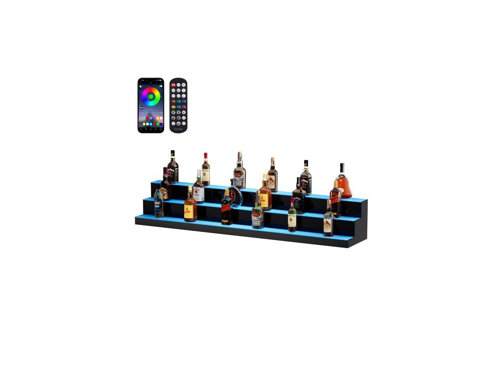 VEVOR LED osvětlená lišta s displejem na láhve na alkohol Polička RF & App Control 60" 3-krokováVícebarevné LED osvětlení