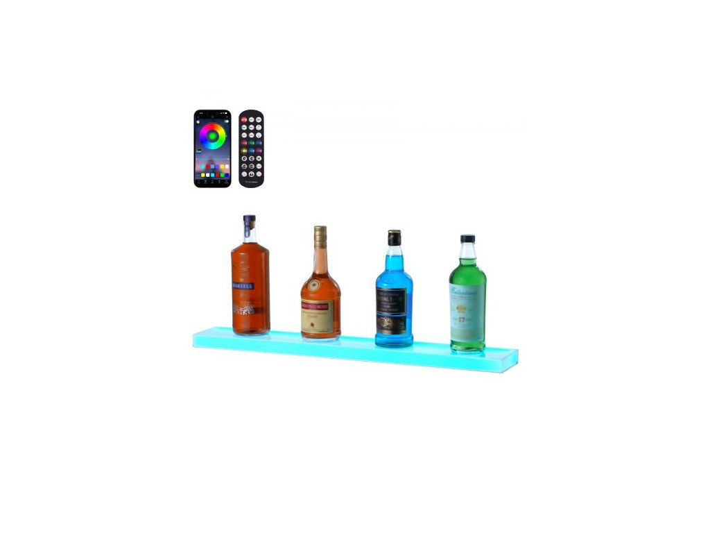 VEVOR LED podsvícený stojan na lahve s alkoholem, 1úrovňový 30palcový nástěnný stojan na whisky, 1stupňový komerční osvětlený domácí barový stojan, akrylové osvětlení nápojů s RF dálkovým ovládáním a ovládáním pomocí aplikaceVícebarevné LED osvětlení