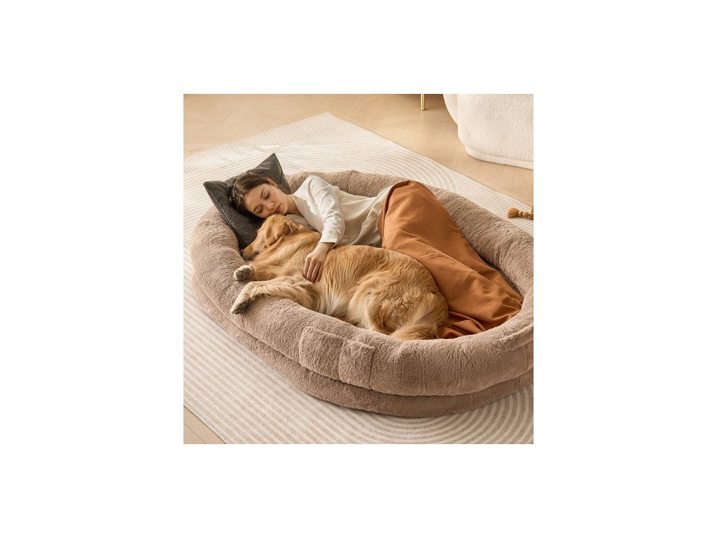 VEVOR Lidský pelíšek pro psy, 182 cm x 122 cm x 25 cm pro dospělé psy, pelíšek pro psy lidské velikosti s pratelným potahem z umělé králičí kožešiny, ortopedická pěna s motivem vajec, úložná kapsa, velký psí pelíšek ve tvaru fazole, hnědýVelký pelíšek pro lidské psy
