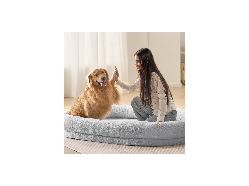 VEVOR Lidský pelíšek pro psy, 182 cm x 122 cm x 25 cm pro dospělé psy, pelíšek pro psy lidské velikosti s pratelným potahem z umělé králičí kožešiny, ortopedická pěna s motivem vajec, úložná kapsa, velký psí pelíšek ve tvaru fazole, světle šedý