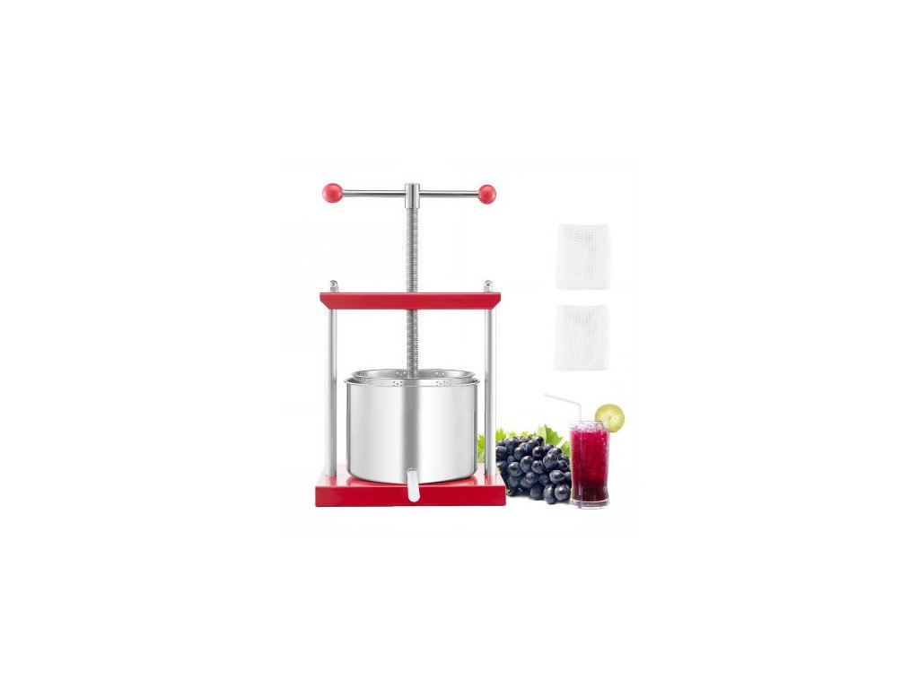 VEVOR lis na ovocné víno 1,6 galonu/6 l, 2 nerezové sudy, ruční odšťavňovač, lis na výrobu jablečného, hroznového a medového olivového oleje s T-rukojetí pro venkovní kuchyň a domácnostVelká přítlačná deska