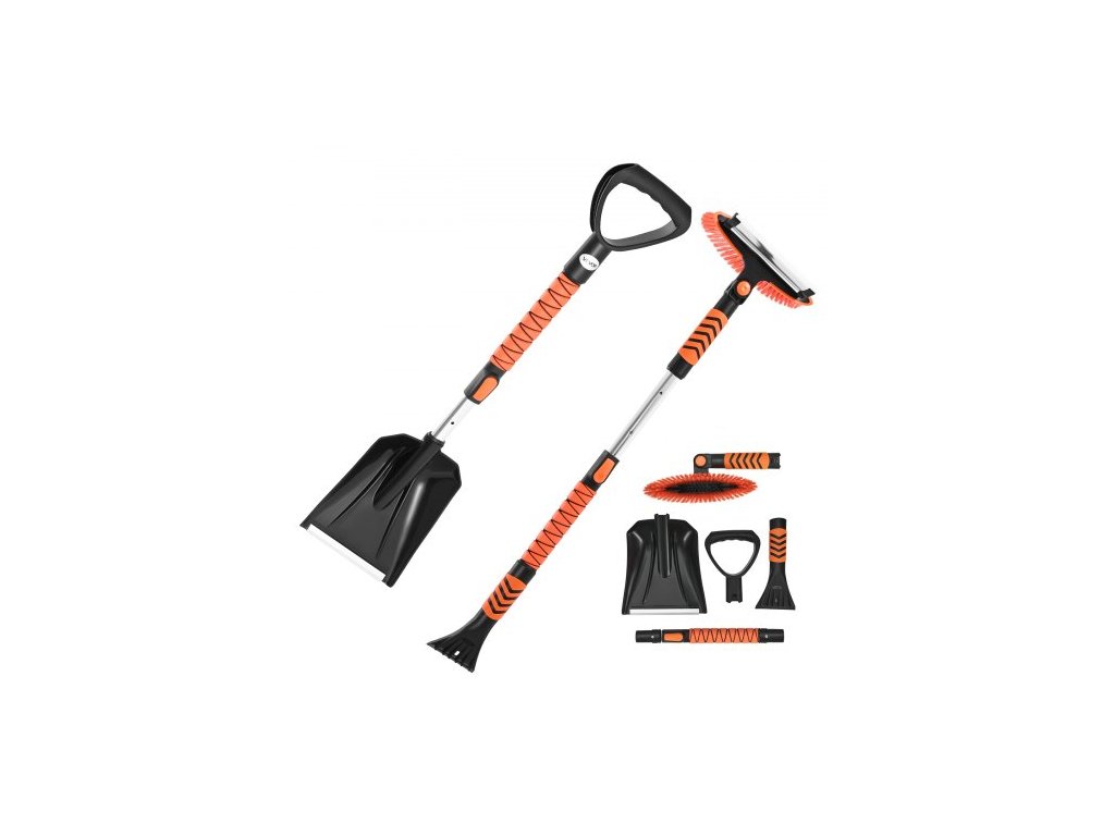 VEVOR lopata na sníh a kartáč na sníh, 107cm výsuvný sněhový koště a škrabka na led s otočnou kartáčovou hlavou o 180°, protiskluzová rukojeť, přenosné zimní nástroje pro odklízení sněhu pro automobily, nákladní vozy, SUV
