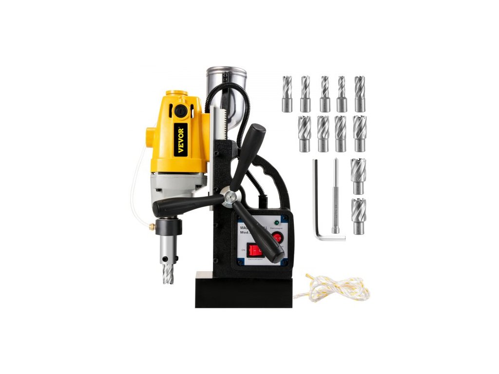 VEVOR MD40 1-1/2 palce Elektrická magnetická vrtačka s lisem na vrtačku s 11PC HSS sadou řezaček Sada přesných prstencových řezaček Kompaktní přepínatelný Evolution 1100W Magnet ForceVynikající výkon