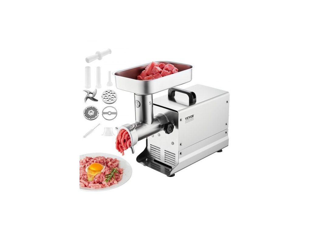 VEVOR mlýnek na maso, elektrický mlýnek na maso s kapacitou 5 liber/min s čepelí, mlecí deska, výrobník klobás, nerezový komerční mlýnek na maso pro kuchyň, restauraci, řeznictví
