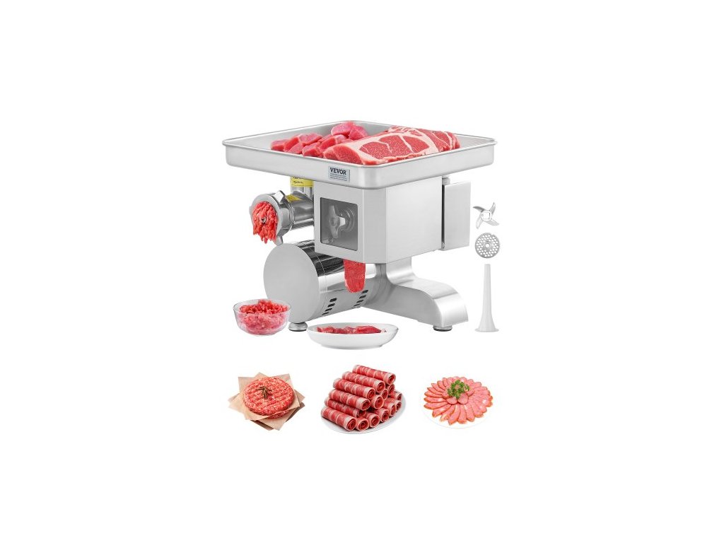 VEVOR mlýnek na maso, elektrický mlýnek na maso s výkonem 11 liber/min, kráječ, plnička klobás s čepelí, mlecí deska, výrobník klobás, nerezový komerční mlýnek na maso na krájení, drcení a kostky, řezník v restauraciMultifunkční