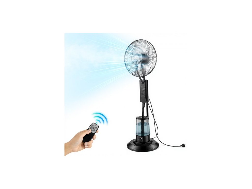 VEVOR Mlžící ventilátor, 3 rychlosti větru, stojanový mlžící ventilátor, chladicí ventilátory s 3litrovou nádrží na vodu, dálkové a panelové ovládání, vodní chladicí ventilátory pro vnitřní i venkovní použití, garáž, terasu, obývací pokoj, 3 režimyVentilátor pro mlžení